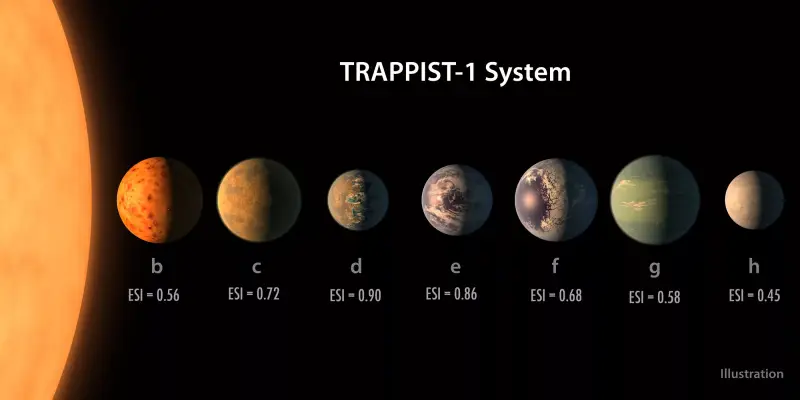 The TRAPPIST-1 solar system is about 500 light-years from Earth and has a similar planet arrangement to our Solar System.